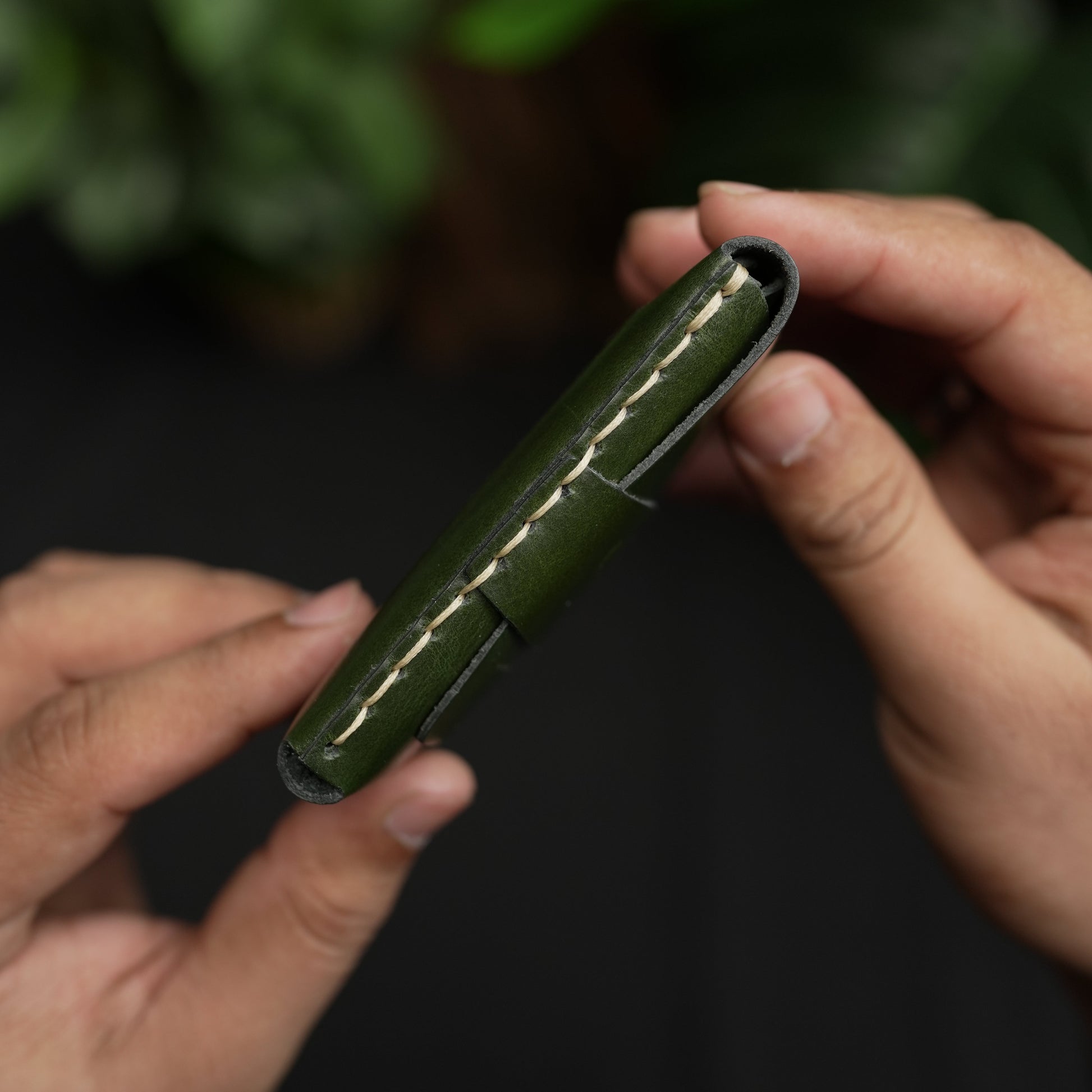 Each wallet is hand-stitched using Tiger Thread, ensuring long-lasting durability. Designed as a smart wallet for men, it keeps your essentials organized without adding bulk.