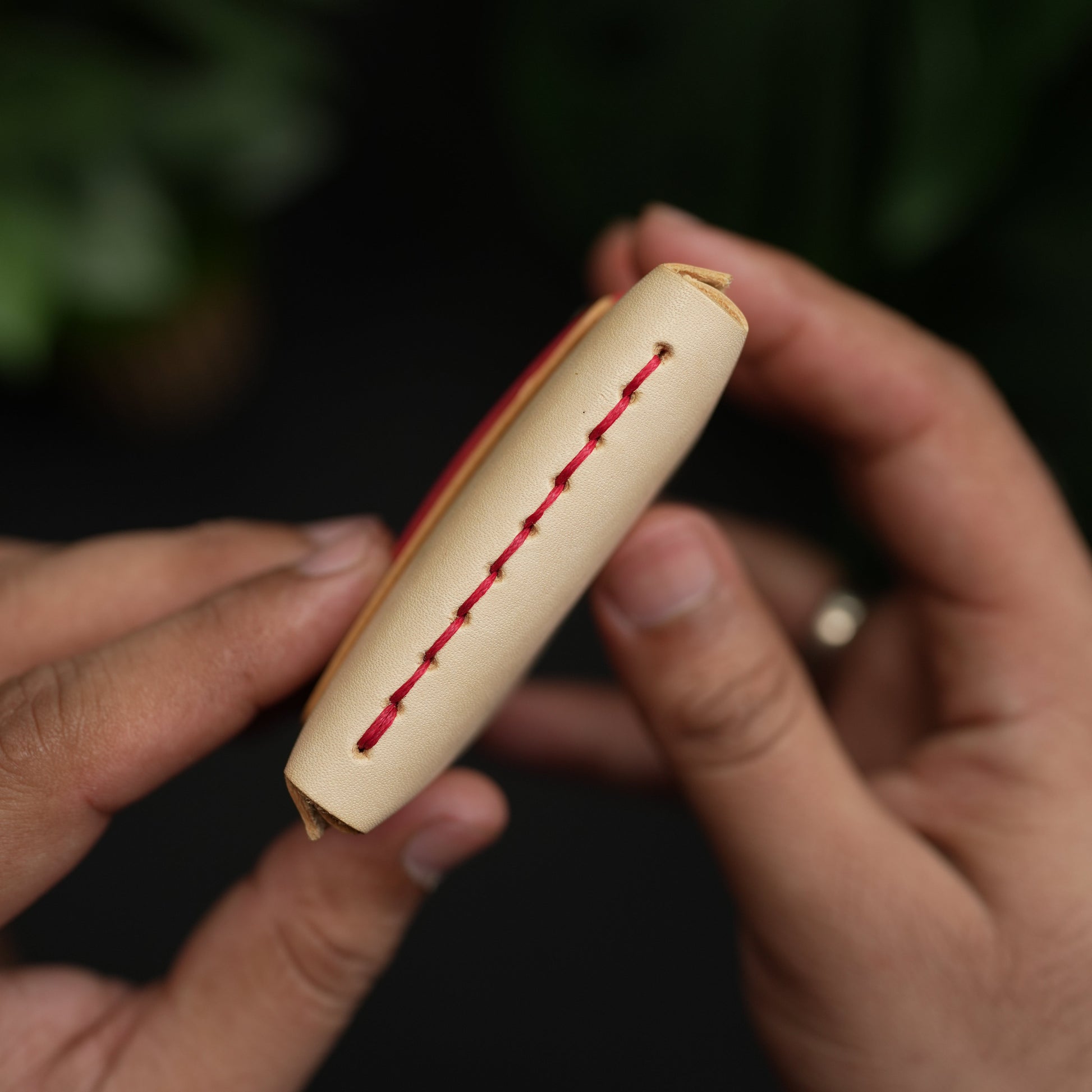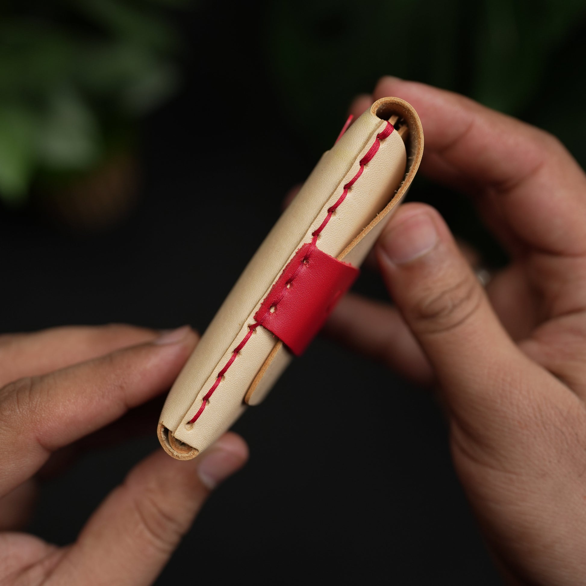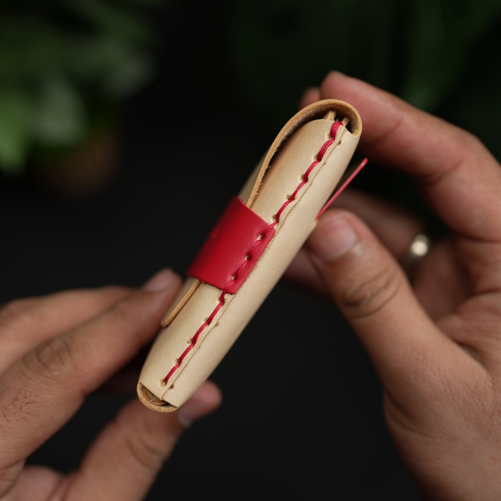 No. 101 All in one Card wallet natural vegtan leather & Red combination