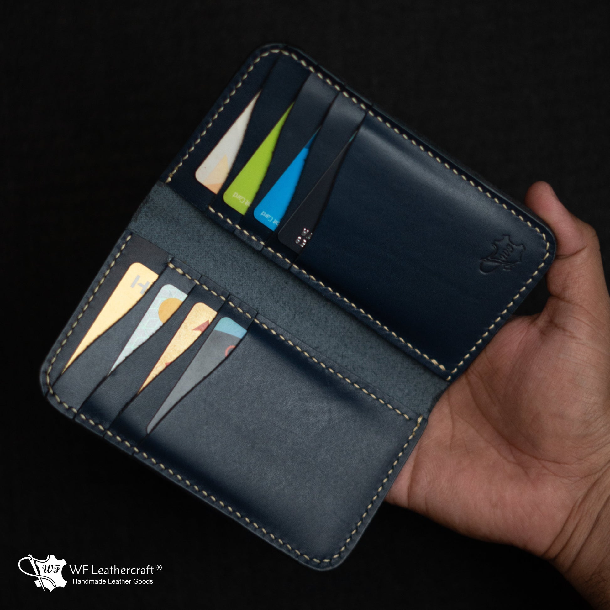The No. 102 Bifold Vertical Mini Long Wallet is a meticulously crafted accessory, made entirely by hand using 100% full-grain vegan cow leather. This wallet features eight vertical card slots and two hidden slots, providing ample storage while maintaining a sleek profile. Its edges are neatly burnished for a refined finish, ensuring durability and elegance. With a lifetime guarantee, this wallet exemplifies quality and craftsmanship, making it a perfect choice for those who value both style and functionality.