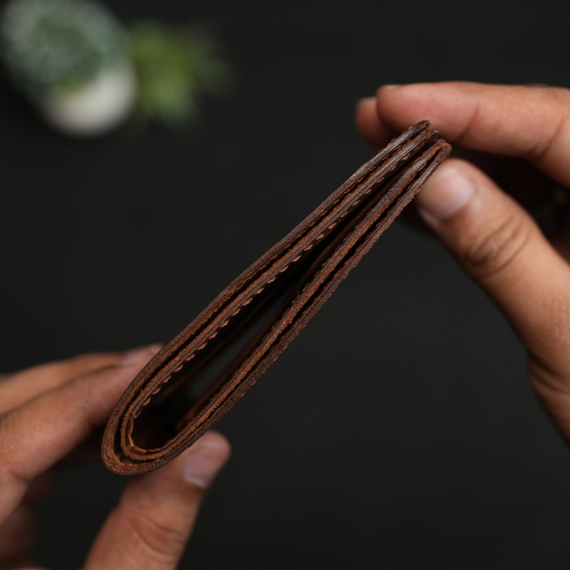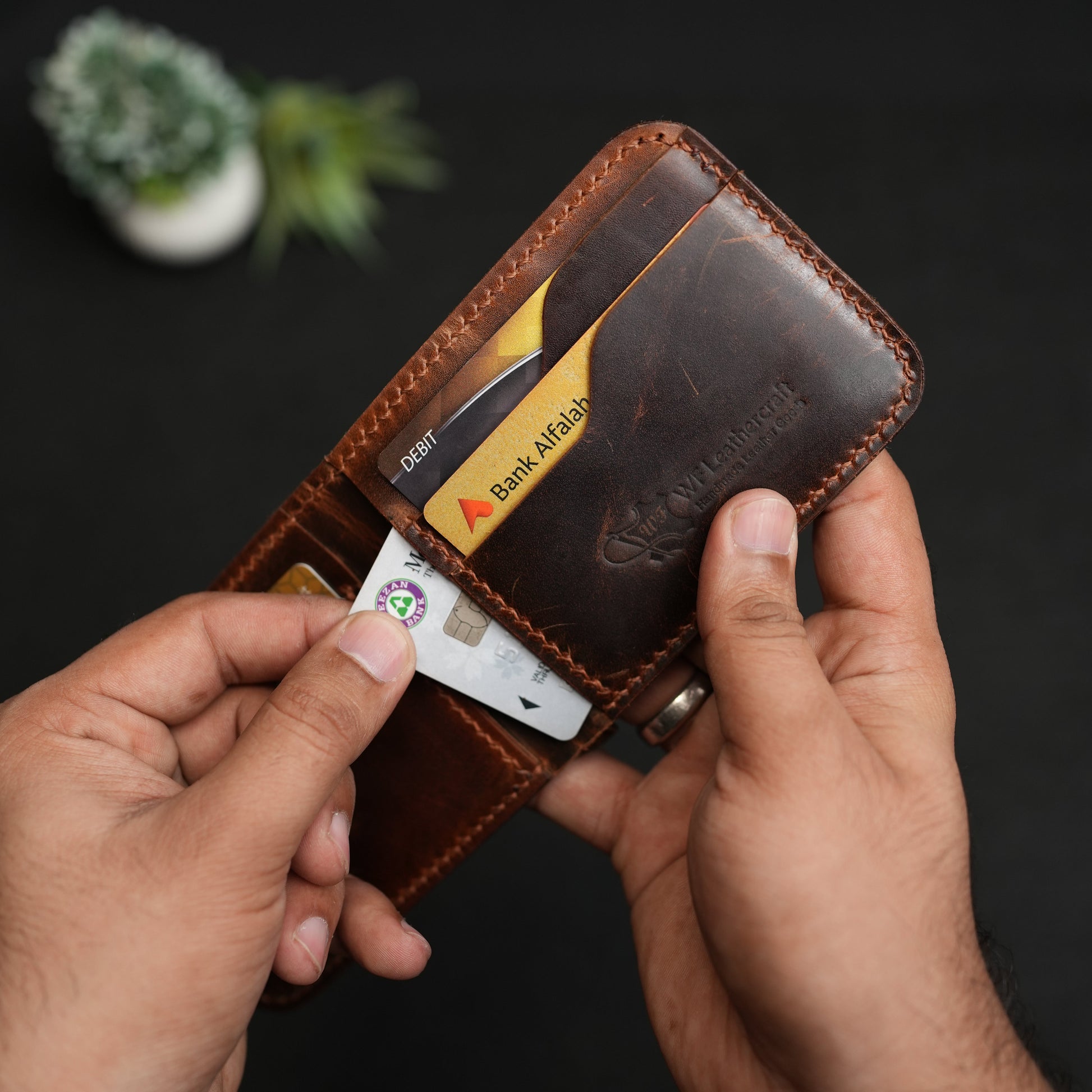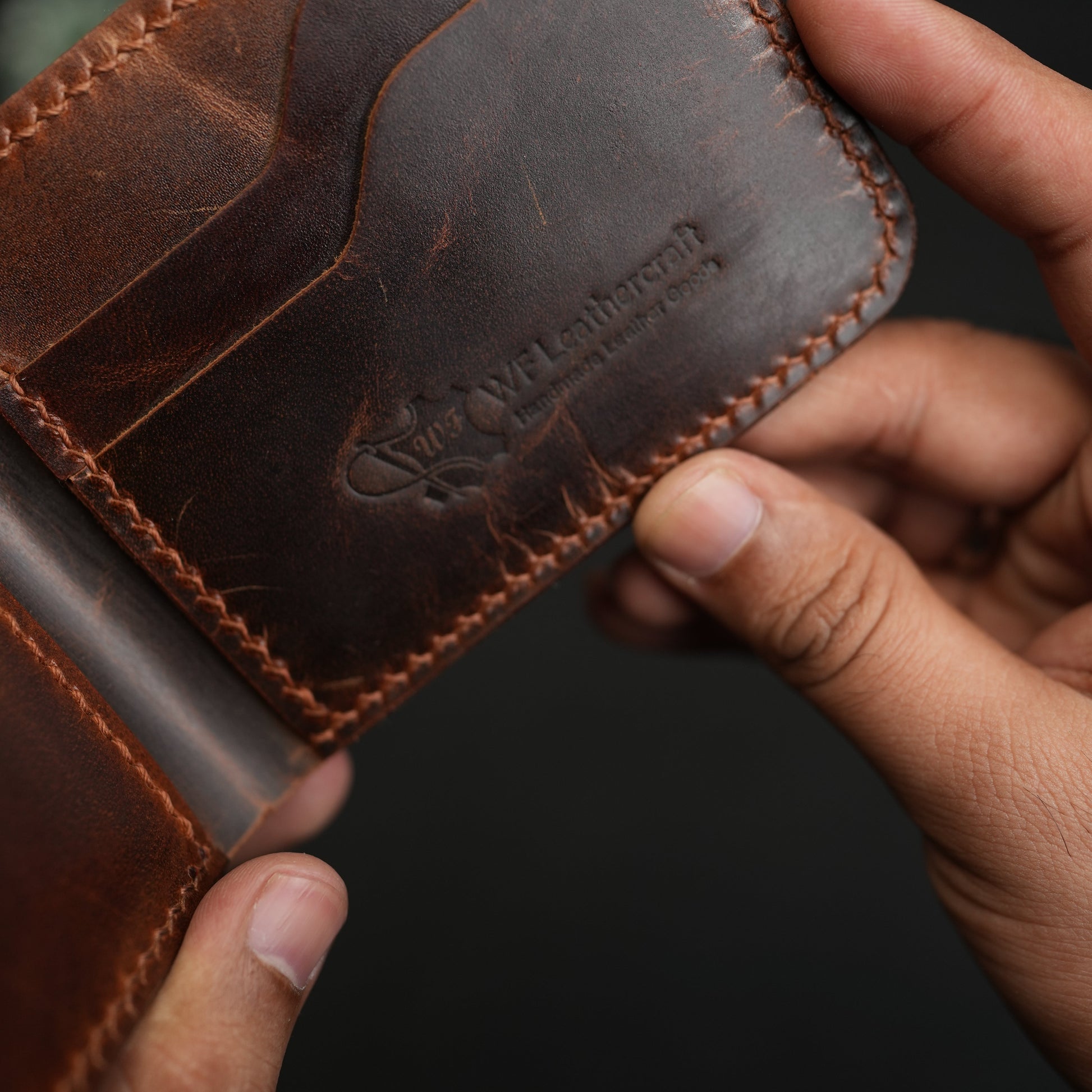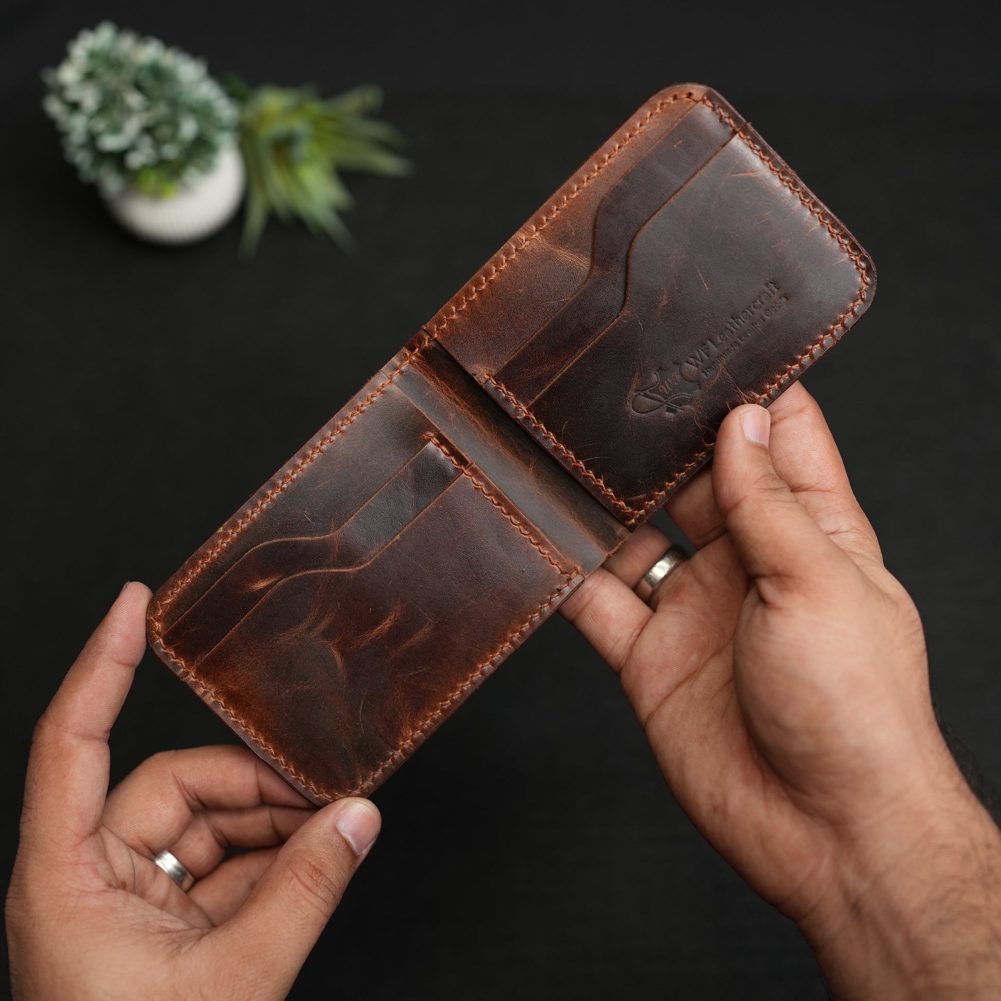 Each piece is carefully handcrafted by WF Leathercraft, a custom leather company known for producing handmade leather wallets and leather goods in Pakistan. The wallet is fully hand-stitched inside and out using French-style stitching with bonded nylon thread imported from Japan, ensuring durability and elegance that lasts.