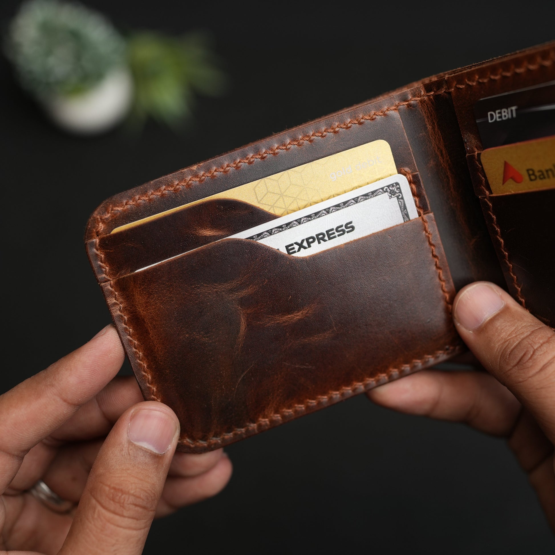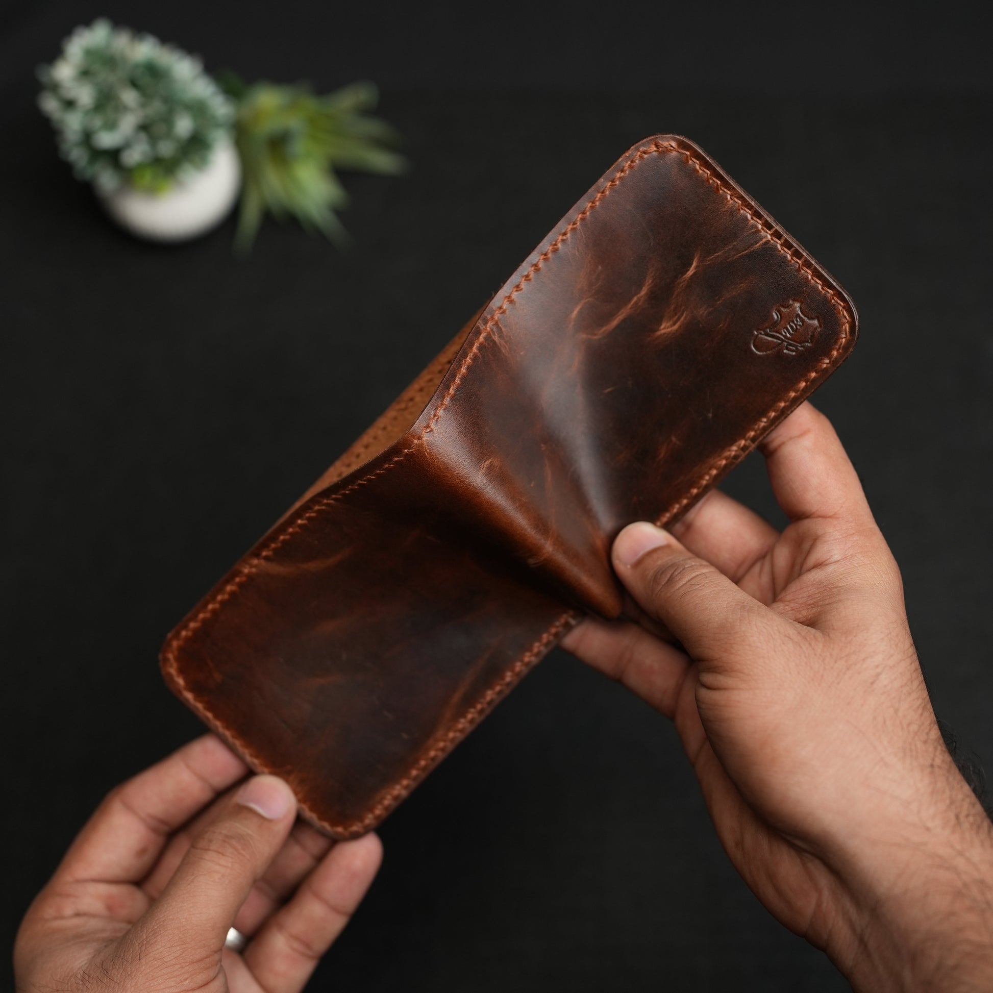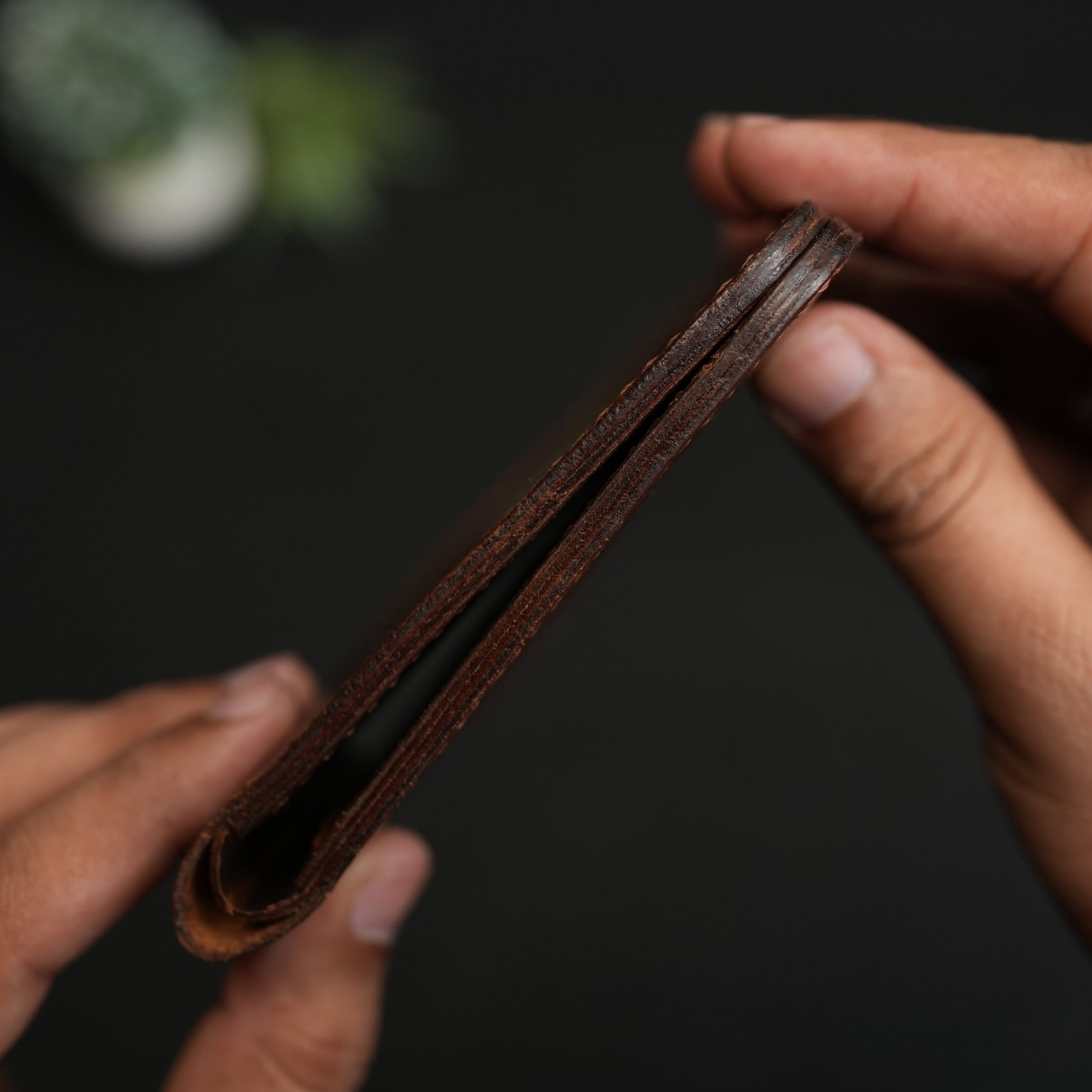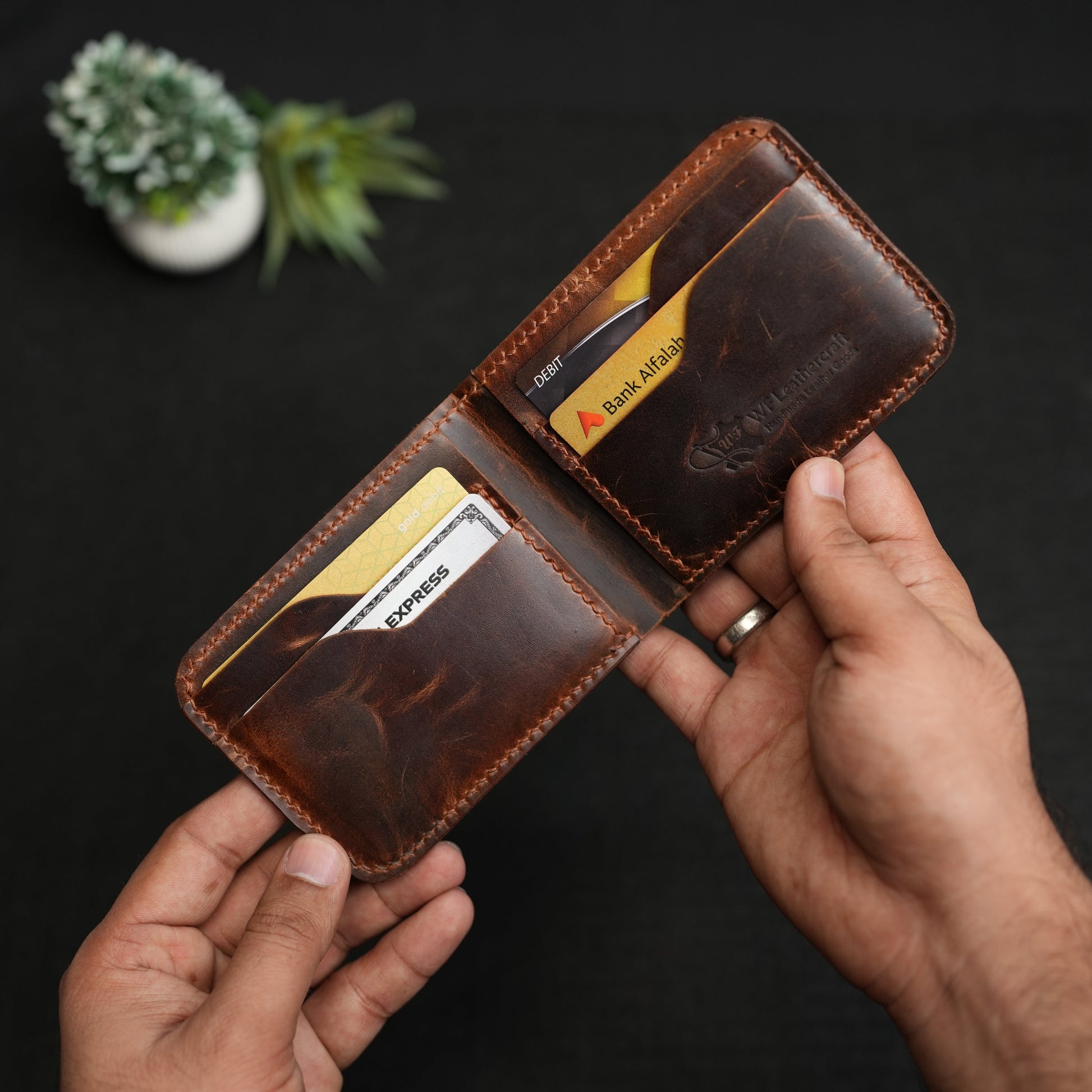 Each piece is carefully handcrafted by WF Leathercraft, a custom leather company known for producing handmade leather wallets and leather goods in Pakistan. The wallet is fully hand-stitched inside and out using French-style stitching with bonded nylon thread imported from Japan, ensuring durability and elegance that lasts.