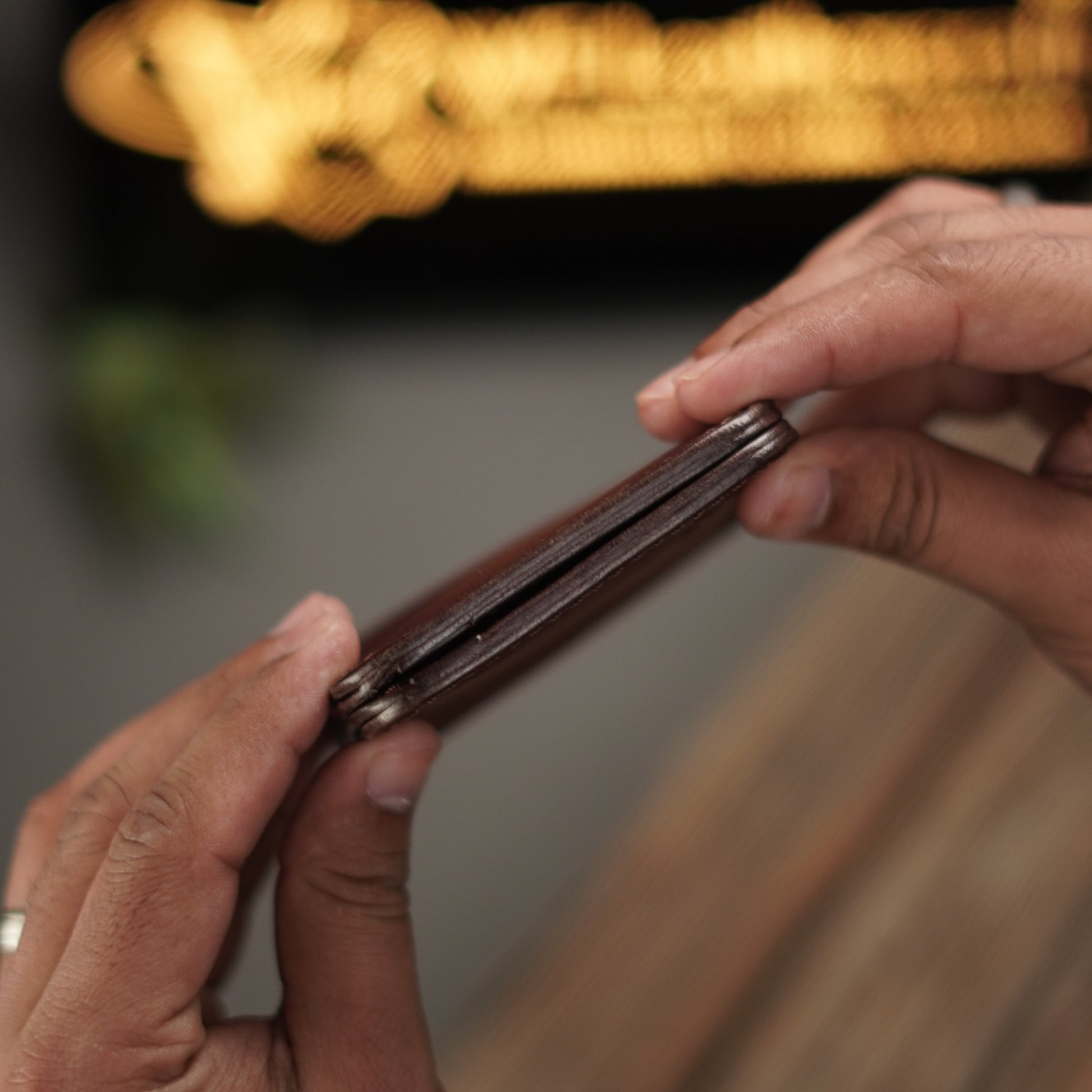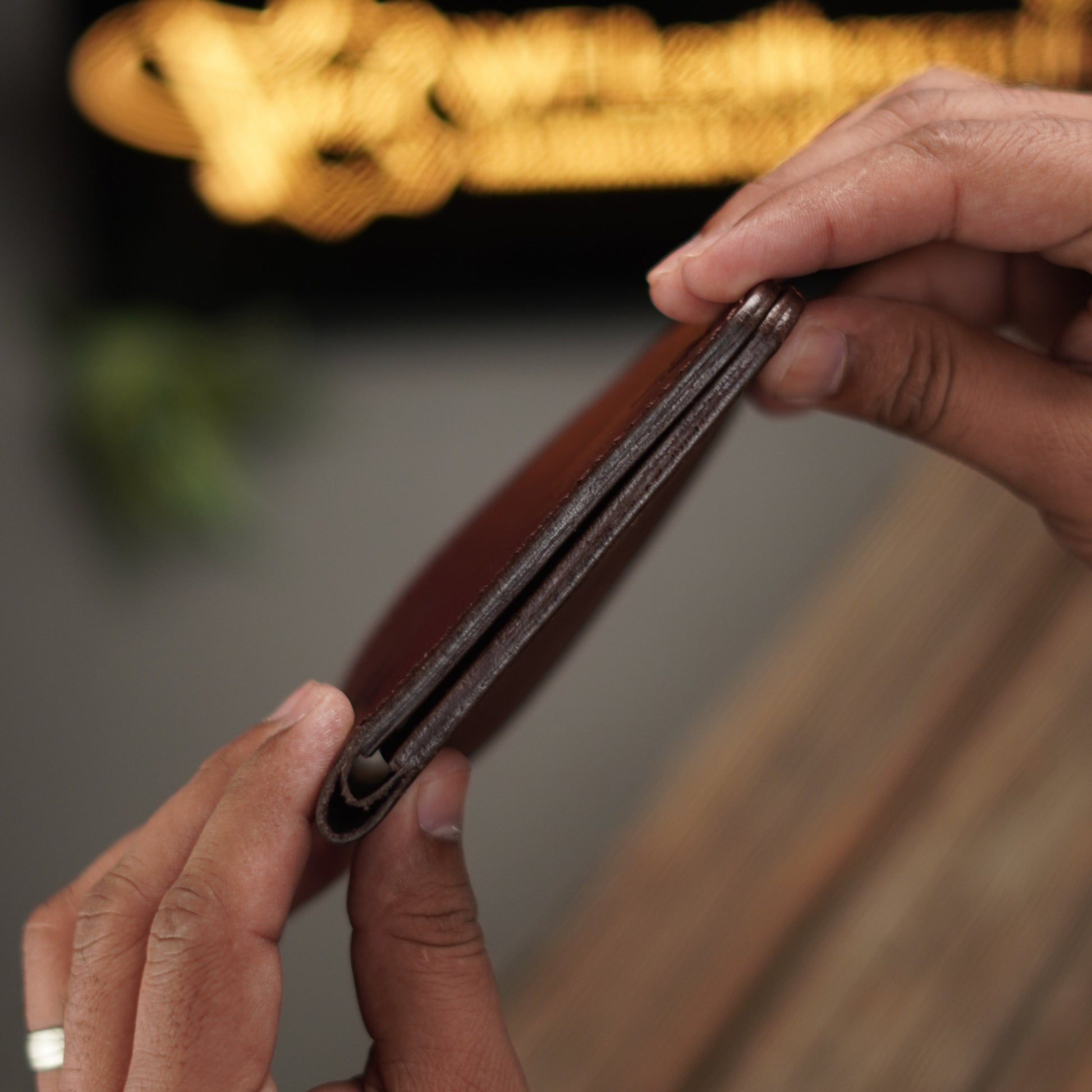 The No.55 classic full-stitched wallet is a stylish yet functional accessory for any man. It is made of premium full-grain veg-tan leather and features French-style stitching with Japanese thread that adds to its durability. The wallet has 4 main card slots and 2 hidden pockets for your cards and receipts. Moreover, it comes with 2 cash pockets, allowing you to carry your bills organized and securely. With a lifetime guarantee, you can trust this wallet will last you a lifetime.