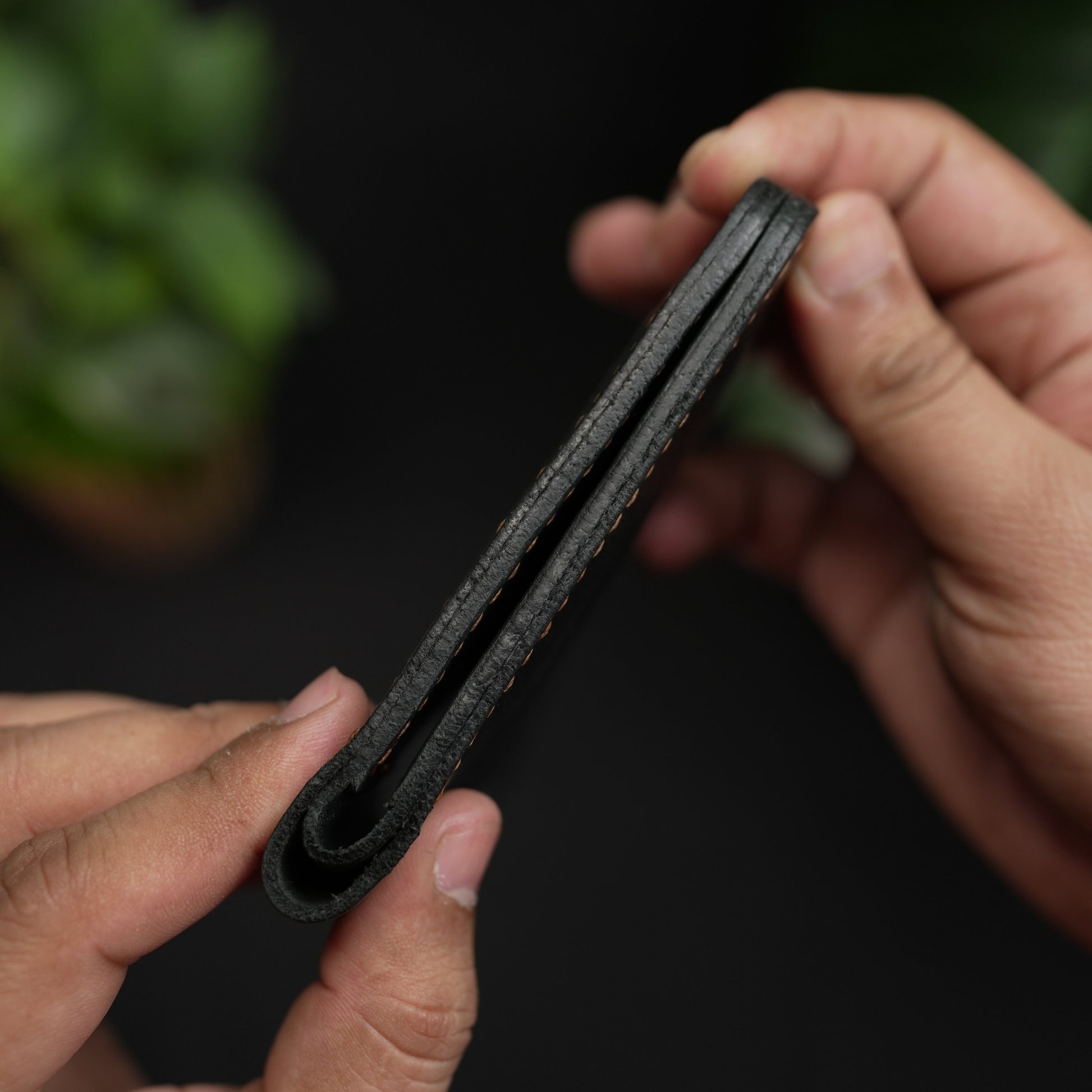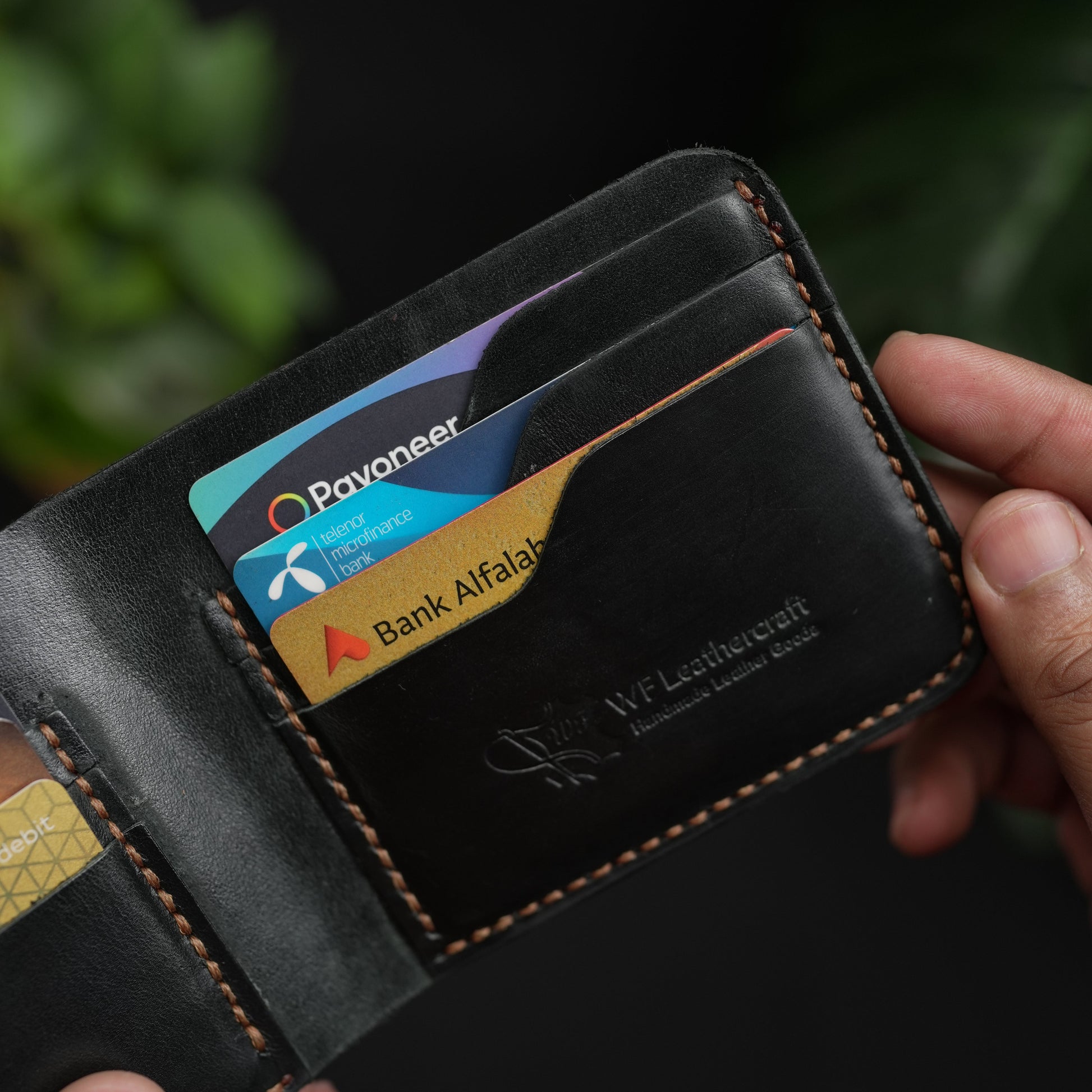ntroducing the No.55 Pro Bifold Wallet in a timeless black and leather finish. Meticulously handcrafted from premium full-grain cow leather, this elegant bifold leather wallet blends refined style with everyday practicality. Its diamond-style hand stitching reflects skilled craftsmanship, giving it strength and a touch of luxury. Designed by WF Leathercraft, one of the best leather brands in Pakistan, this piece stands as a mark of true quality.