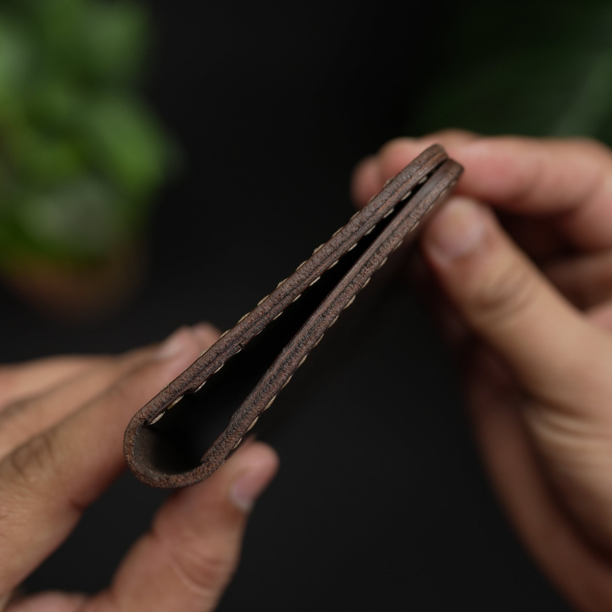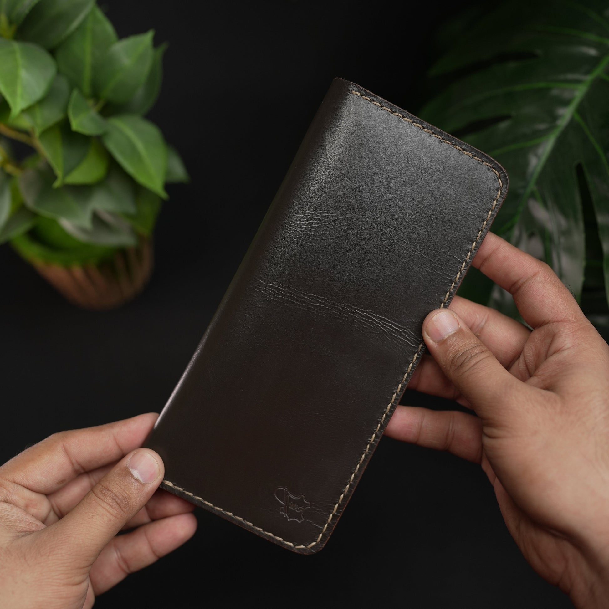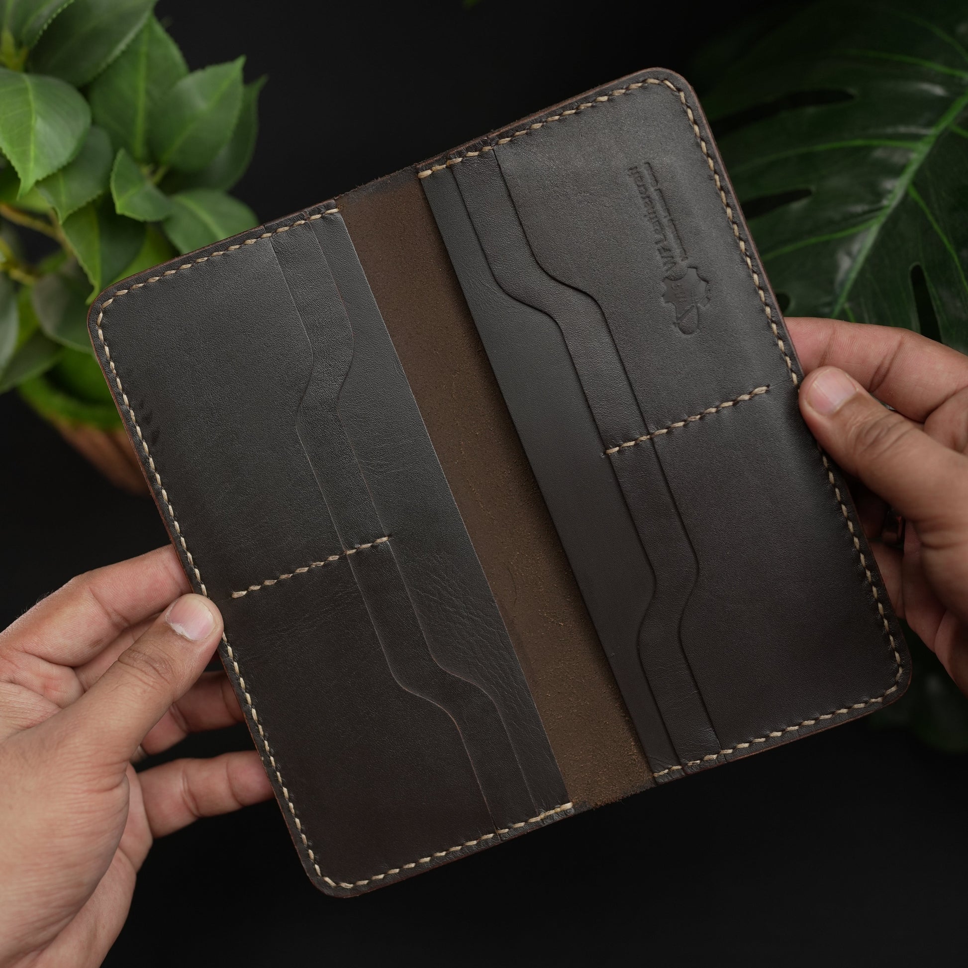 Introducing the No.72 Long Bifold Wallet, designed for the minimalist who values style, durability, and premium craftsmanship. Made from 100% full-grain chrome-tanned pullup cow leather, this handcrafted leather wallet is built to last for years while maintaining its elegant look.