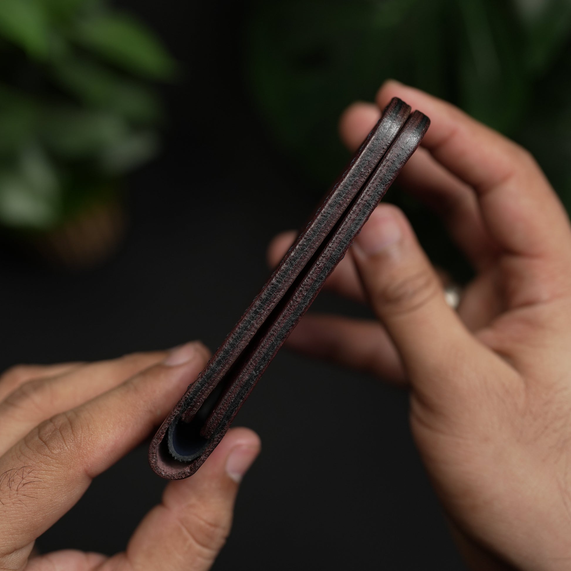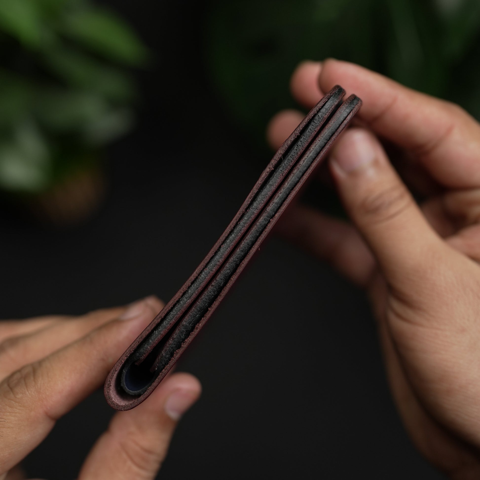 The No.77 gents wallet features four interior card slots (each holding two cards), two hidden pockets, and one billfold compartment that easily accommodates multiple bills. This compact and elegant mens leather wallet is perfect for those who value craftsmanship, functionality, and long-lasting durability.