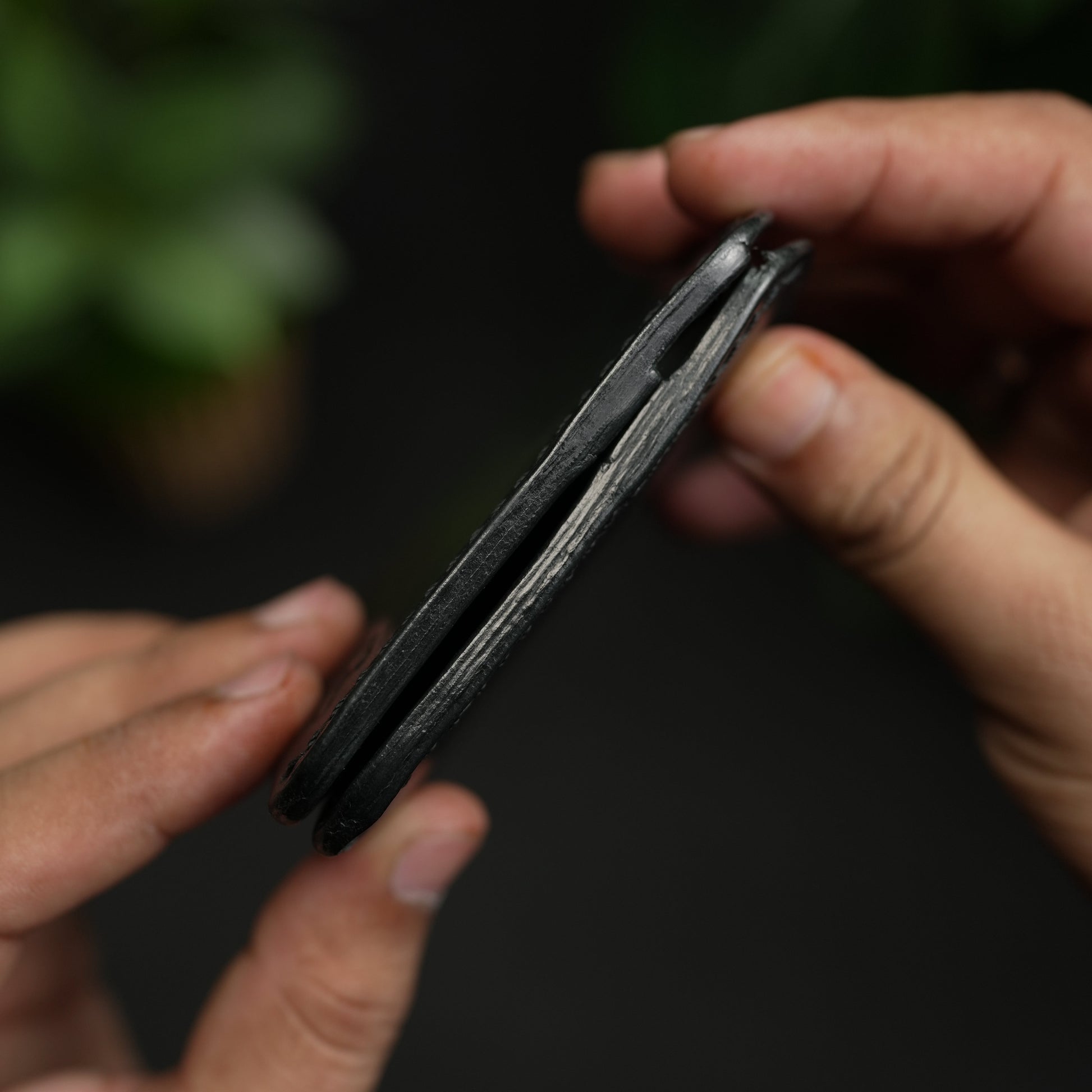 Made from premium full-grain vegetable-tanned leather, sourced from Pakistan’s top tanneries, this wallet combines timeless style with everyday practicality. The handmade leather wallet is stitched in a clean French style using durable Japanese nylon thread, while the edges are carefully burnished and finished with Fiebing’s Edge Cote for a refined look.
