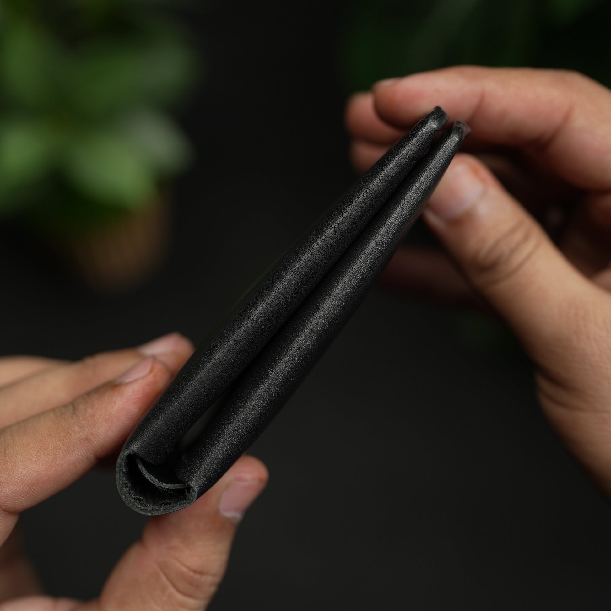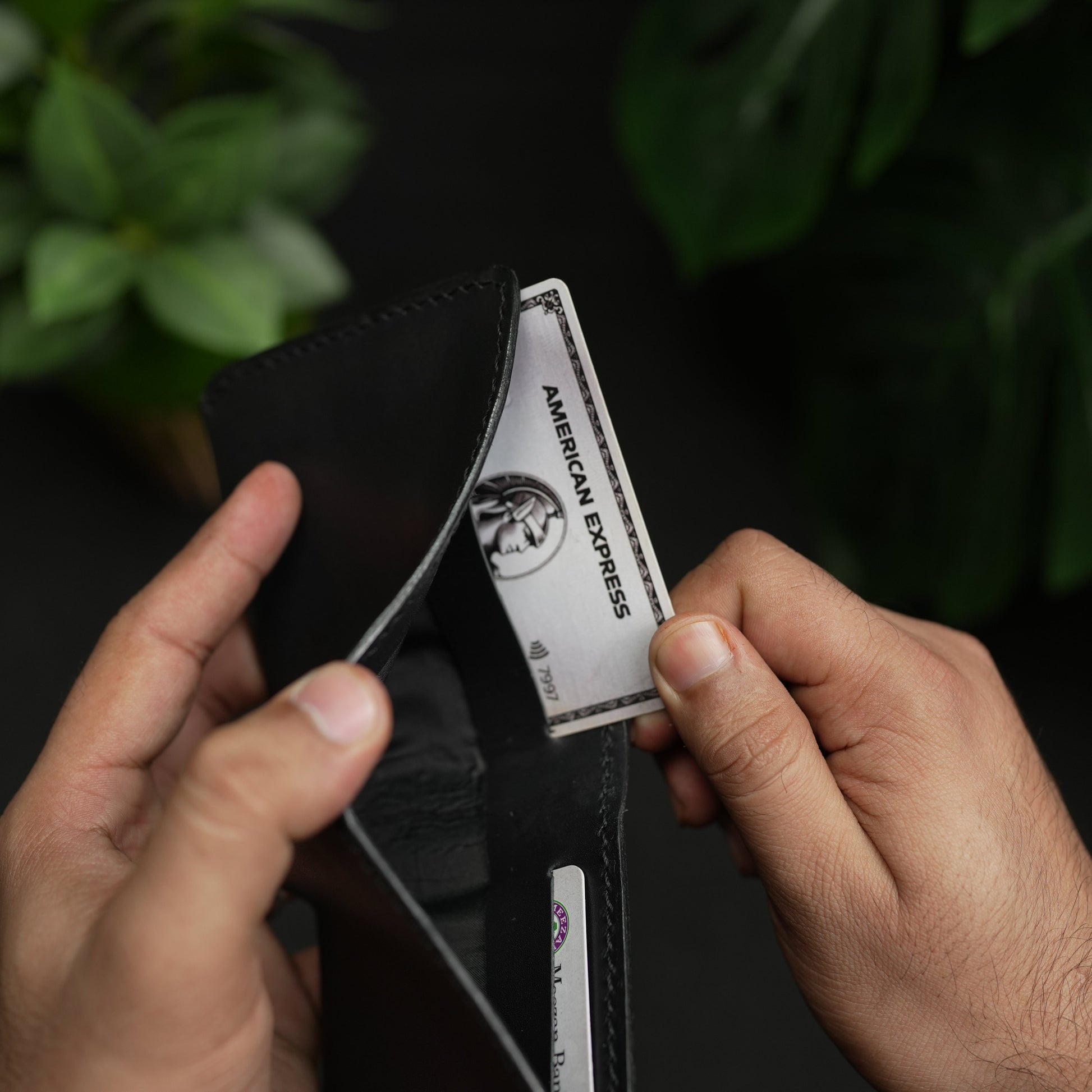 Step up your accessory game with the No. 81 Classic Bifold Leather Wallet for Men in full black with black stitching. This piece reflects over eight years of dedication to fine craftsmanship, making it one of the best leather wallets in Pakistan.