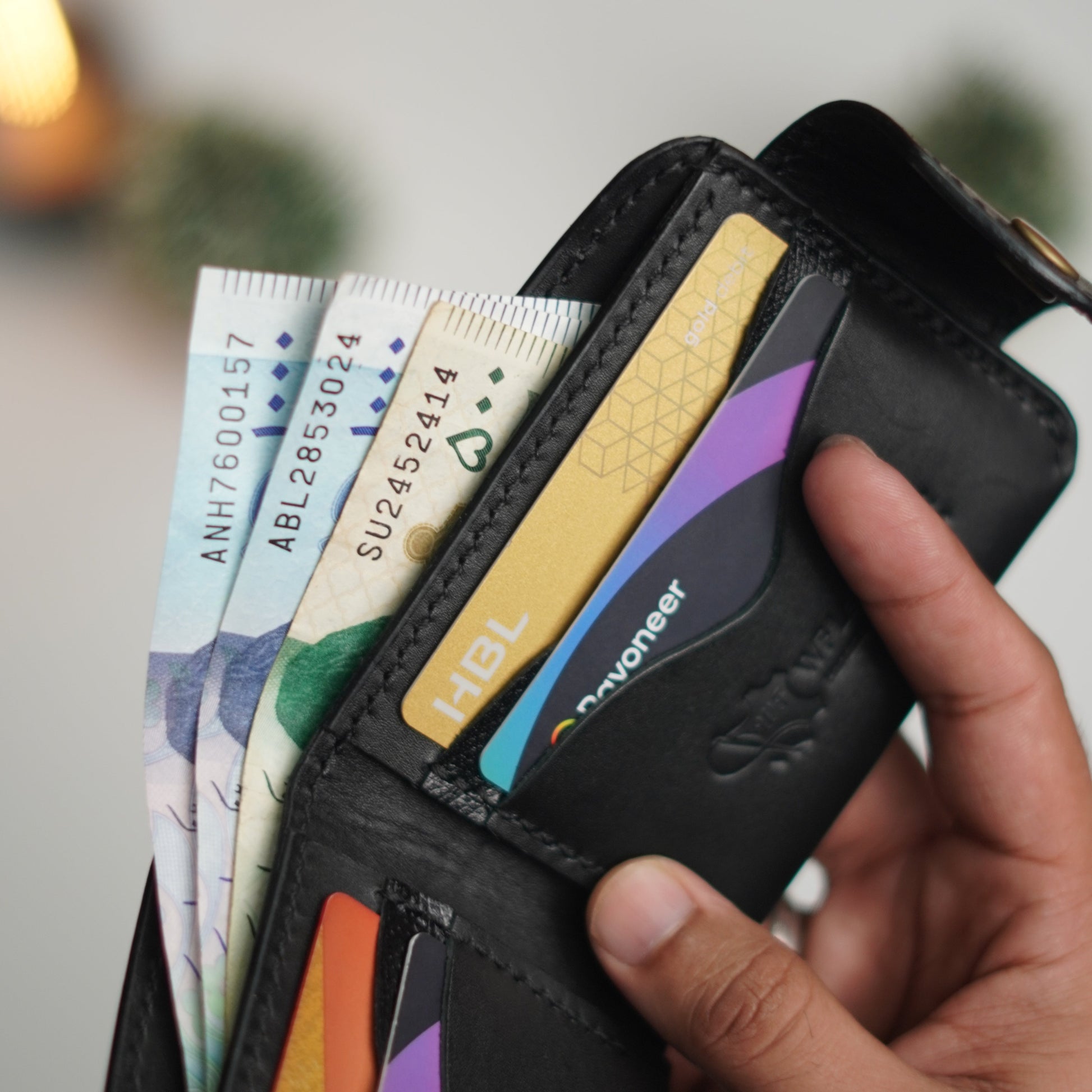 • Outer Snap Button Closure: Prevents the wallet from opening unintentionally — even when filled with bulk.