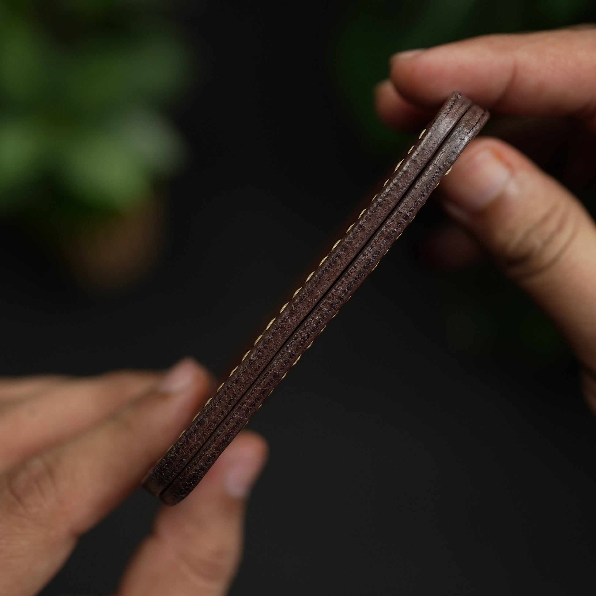 Meticulously hand-stitched using French-style saddle stitching, this genuine leather wallet blends sophistication with everyday practicality. Its minimalist vertical design makes it slim and lightweight, ideal for those who value both style and function.